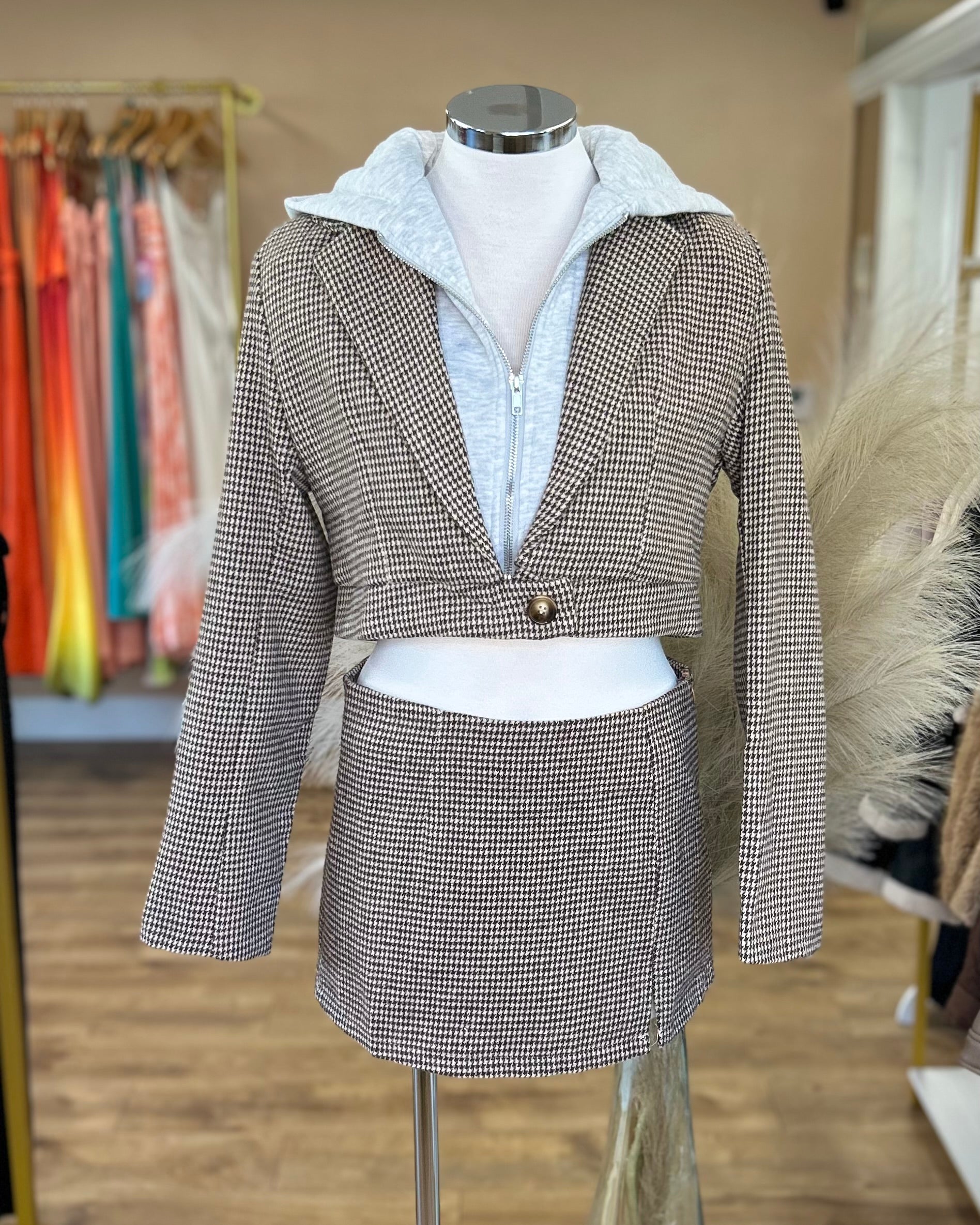 This checked pattern skirt is a must-have addition to any wardrobe. Made with a stylish slit design and featuring a classic checked pattern, this mini skirt is perfect for adding a touch of sophistication to any outfit. The timeless design is sure to make you stand out and elevate your style game.